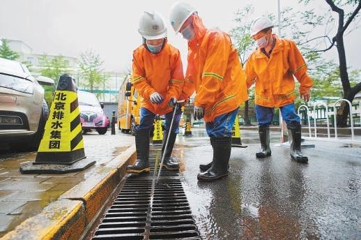 昨天9時許,在朝陽區(qū)管莊路上的一處排水口旁,兩名北京排水集團(tuán)的防汛人員先用錐桶做好警戒防護(hù),接著用鉤子鉤起雨水箅子,加速排水。在朝陽區(qū)金泰橋下凹橋區(qū),北京排水集團(tuán)壩河流域分公司的工作人員早六時就到達(dá)現(xiàn)場進(jìn)行值守。“這個點位地勢較低,短時雨量大的情況下容易造成積水,為避免影響交通,我們提前做好了準(zhǔn)備。”現(xiàn)場一位工作人員說。