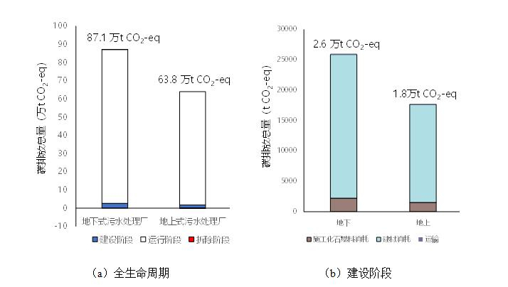 地下式污水處理廠產生的綜合環境與投資影響(LCCI)較同等規模與工藝的地上式污水處理廠高出21%,全生命周期碳排放較地上式高出36.5%。即使地下廠地面部分留作綠地園林景觀,所產生生態效益也無法抵消對環境產生的總的負面影響。