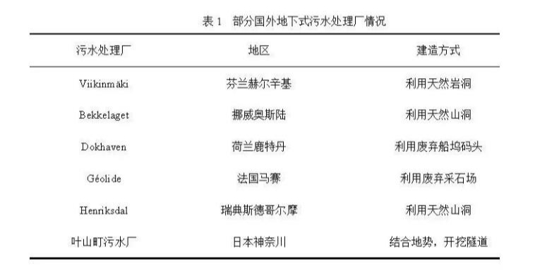 在人口密度更高,城市用地更為緊張,社會經濟更加發達的一些歐美、日本等國家(圖5),地下式污水處理廠并非遍地開花,幾乎是鳳毛麟角。此外,國外少有的一些地下式污水處理廠案例(表1)中,其建設選址、緣由也非盲目跟風,主要是充分利用天然山洞、廢棄地下建筑等地形順勢而為,因此而大大減少了建設所需的工程量。可見,地下污水處理廠的建設應因地制宜,不應盲目跟風。