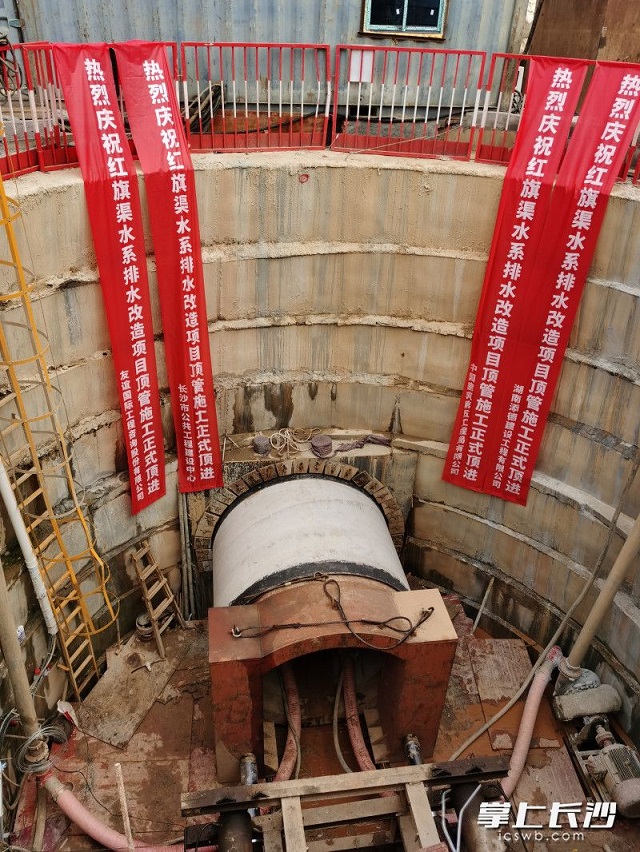 9月7日,在三湘南湖大市場湘湖路,一座8米深的工作井內,一臺直徑2.4米的頂管機刀盤緩慢轉動起來,由長沙市公建中心投資建設、中建五局總承包公司負責施工的紅旗渠水系排水改造項目實現頂管始發,這標志著該項目正式進入主體施工階段。項目建成后,長沙老城區雨污合流制溢流污染將得到有效控制,城市排水系統防澇排漬能力將增強,以進一步保護瀏陽河水質,為長沙市民創造更好、更安全的生活環境。