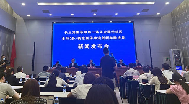 今年是示范區“新三年”的起步之年, 2023年5月16日上午,示范區執委會會同水利部太湖流域管理局,兩省一市三級八方水利(務)部門,聯合召開示范區水利(務)領域聯保共治創新實踐成果新聞發布會,共同發布示范區《水利專項規劃》《供排水專項規劃》《聯合河湖長制工作規范》和《水利(務)領域2023年行動計劃》。