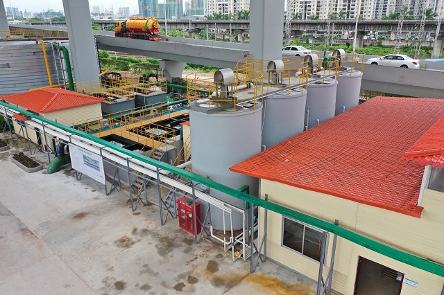 節(jié)約用地是本項(xiàng)目處理工藝的重要亮點(diǎn)。易新貴介紹說,天河區(qū)屬于中心城區(qū),土地資源緊缺,一體化設(shè)備高度集成,占地面積小,非常適合城市中的污水處理需求,“這里是高架橋旁,原來是用來停放城管功能用車,用來做一體化污水處理廠,大大節(jié)約了用地成本,也避免了選址難題。”