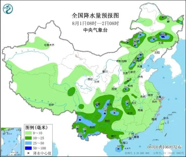 中央氣象臺預(yù)計(jì),8月1日白天到夜間,京津冀等地強(qiáng)降雨明顯減弱,但河北中西部和北部沿山地區(qū)、北京、天津北部以及河南北部和西部、四川東部和南部、貴州、云南等地部分地區(qū)有中到大雨,河北北部、北京西部沿山地區(qū)及吉林北部、四川東南部、云南西北部等地有分散性暴雨(50——70毫米)。上述部分地區(qū)伴有短時(shí)強(qiáng)降水(最大小時(shí)降雨量30——50毫米,局地可超過60毫米),黑龍江西北部等地的局地將有雷暴大風(fēng)或冰雹天氣。