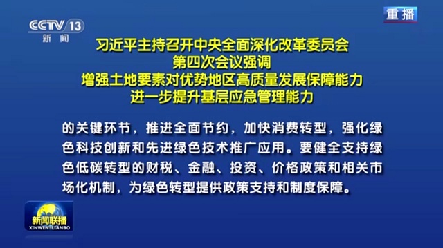 2月19日下午,中共中央總書記、國家主席、中央軍委主席、中央全面深化改革委員會主任習近平主持召開中央全面深化改革委員會第四次會議,審議通過了《關于促進經濟社會發展全面綠色轉型的意見》等重要文件。