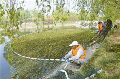 水草是河道生態(tài)環(huán)境的重要組成部分,水草生長(zhǎng)可有效吸附富營(yíng)養(yǎng)化物質(zhì),對(duì)凈化河道水質(zhì)具有重要作用。由于水草生長(zhǎng)期結(jié)束后會(huì)脫落腐爛,為防止其影響河道水環(huán)境,市水務(wù)部門自今年2月起對(duì)中心城區(qū)海河等重點(diǎn)河道斷面水草生長(zhǎng)情況進(jìn)行監(jiān)測(cè),及時(shí)采取機(jī)械收割、人工圍網(wǎng)等多種方式聯(lián)合作業(yè),進(jìn)一步提高打撈效率。