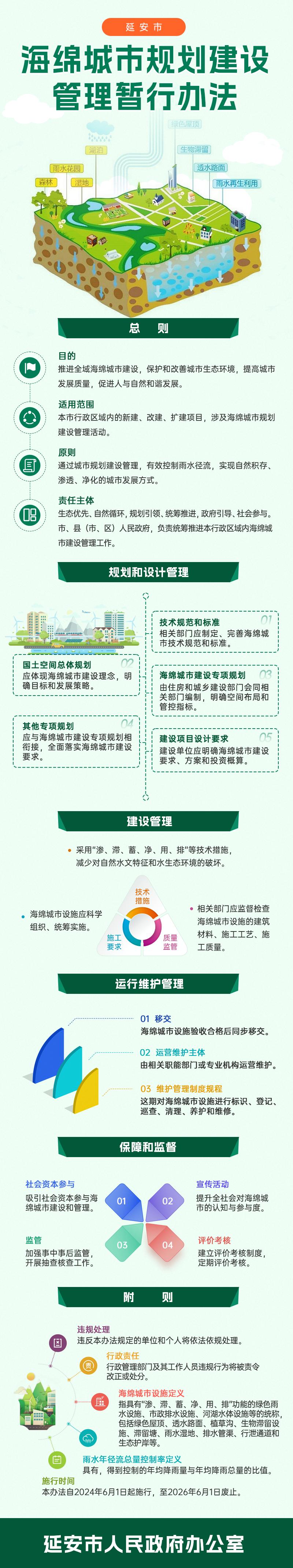 圖解:延安市人民政府辦公室 關(guān)于印發(fā)《延安市海綿城市規(guī)劃建設(shè)管理暫行辦法》的通知