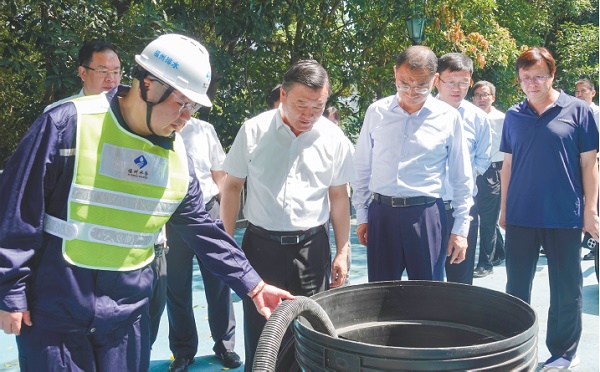 調(diào)研中,倪虹一行首先實(shí)地察看了福州市斗門調(diào)蓄池,詳細(xì)了解設(shè)施運(yùn)行調(diào)度、標(biāo)準(zhǔn)化管理等情況。斗門調(diào)蓄池是福州市江北城區(qū)“六湖三園一池”蓄滯水體工程的重要組成部分。該項(xiàng)目在地上設(shè)置公交停車庫(kù)、地下設(shè)置了約16萬(wàn)立方米的調(diào)蓄池,集約化利用場(chǎng)地空間,統(tǒng)籌解決公交停車和防澇問(wèn)題。倪虹說(shuō),水是不可壓縮的,水的流動(dòng)是有規(guī)律的,在城市排水防澇中,要順應(yīng)自然、尊重規(guī)律。城市地下空間是地面空間的重要補(bǔ)充,利用地下空間調(diào)蓄雨水是經(jīng)過(guò)實(shí)踐檢驗(yàn)行之有效的辦法,這方面潛力很大,可以因地制宜推廣應(yīng)用。