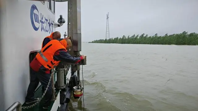 長江委安裝流量監測儀器,準備高洪測驗。水利部供圖