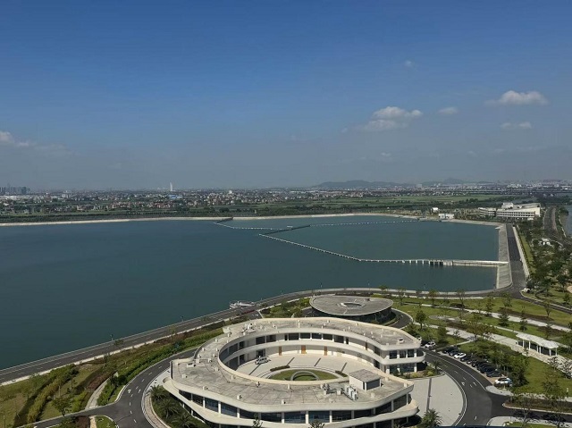 位于廣州南沙的珠三角水資源配置工程高新沙泵站調壓塔上俯瞰粵海湖