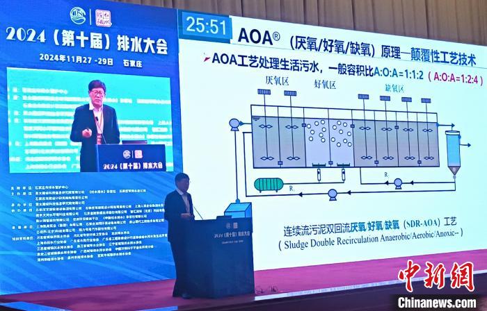 中國工程院院士、北京工業大學教授彭永臻做了題為《顛覆性AOA新技術研究與實踐——城市污水除磷與極限脫氮》的報告。彭永臻認為,AOA新技術在城市污水除磷與極限脫氮方面展現出巨大應用潛力。他深入剖析了AOA技術原理、運行機制和應用案例,為城市污水處理技術工藝升級提供了新的思路和方向。