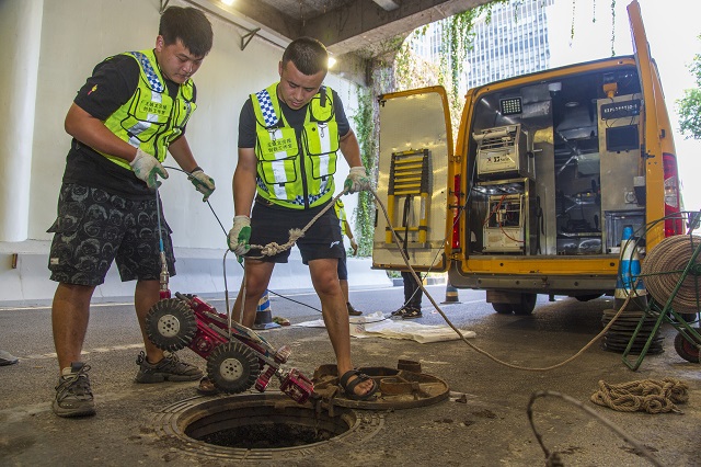 渝中區住房城市建委立即派出巡查人員和管道機器人進行溯源排查。兩個小時后,巡查人員找到事故原因——系附近施工挖破排污管網。相關部門隨即對破損管網實施修復,并向施工單位提供地下管線走向信息,事件得以高效處置。
