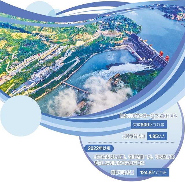 水利部規(guī)劃計(jì)劃司司長(zhǎng)張祥偉介紹,目前,南水北調(diào)東中線一期工程累計(jì)調(diào)水突破800億立方米,直接受益人口達(dá)1.85億人。2022年以來(lái),珠三角水資源配置、引江濟(jì)淮一期、引漢濟(jì)渭等12項(xiàng)重大引調(diào)水工程建成通水,新增年調(diào)水量124.8億立方米;西江大藤峽、新疆大石門(mén)等24座大型水庫(kù)建成投用;新開(kāi)工的黃河古賢水利樞紐等31項(xiàng)流域防洪控制性工程和重點(diǎn)水源工程建成后可新增供水能力49億立方米。