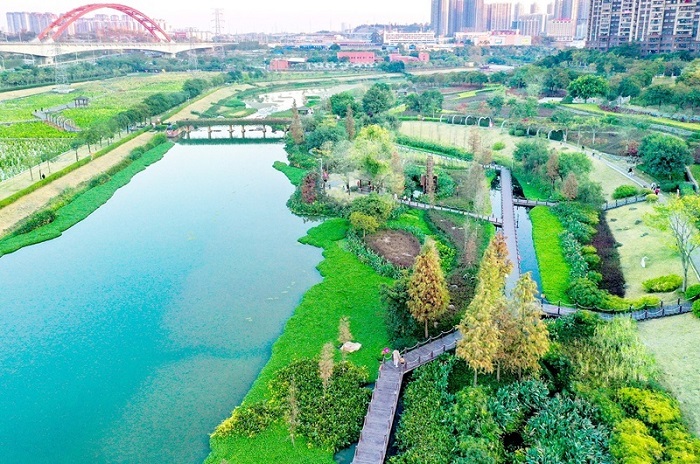 為持續(xù)改善那考河流域生態(tài)環(huán)境,南寧市在河邊打造海綿城市濕地公園,修建層層疊疊的凈水梯田,截流過濾凈化雨水。兩岸種植喬木灌木100多種,種植水生植物19種,用以凈化水質(zhì)。據(jù)不完全統(tǒng)計(jì),自2017年以來,那考河新增動(dòng)植物38種,那考河生物多樣性顯著提升,就連對(duì)水質(zhì)要求特別挑剔的原生植物澤瀉,也在河道兩岸重現(xiàn)生機(jī)。