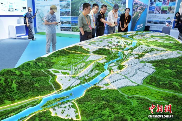 9月11日,在北京舉行的2025年服貿會北京水務科技創新展區,觀眾了解北京永定河流域治理沙盤。據了解,該展區總面積超800平方米,設置濱水空間、數智水務、健康水業及水利水電工程建設四大板塊,集中展示北京水務在科技領域的技術突破與示范應用。中新社記者張祥毅攝