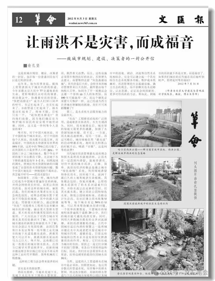 【逝者】俞孔堅:讓雨洪不是災(zāi)害,而成福音——致城市規(guī)劃、建設(shè)、決策者的一封公開信